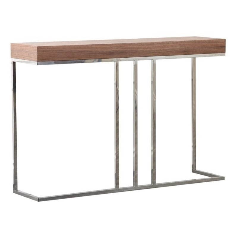 | Abbyson Living - Console Tables - AD023SOF - durable metal frame suspends the rectangular walnut slabminimalistic design allows for simplicity Walnut, Silver Walnut wood, metalWalnut Dimensions: 47 inches wide x 12 inches deep x 31.5 inches high. Specifications:Assembled Dimensions: 31.8 H x 47.2 W x 11.8 DAssembled Weight: 20 lbs# of Cartons: 2Box 1 Dimensions: 2.8 H x 30.3 W x 49 DBox 1 Weight: 15.4 lbsLoadability 20' Container: 458.33Loadability 40' HC Container: 979.17Box 2 Dimensions: 14.2 H x 50 W x 6 DBox 2 Weight: 5.1 lbsLoadability 20' Container: 523.81Loadability 40' HC Container: 1119.05