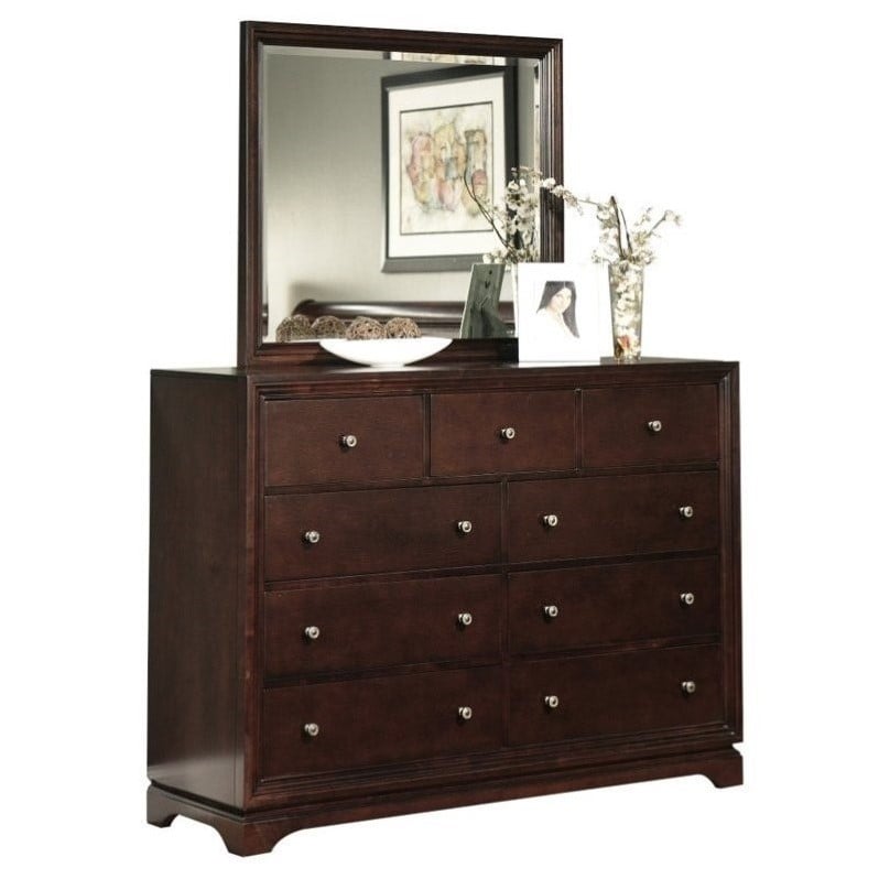 | Abbyson Living - Dressers - HM61502540/10 - Ample storage and high style come home in this fabulous 9 drawer dresser with mirror. This handsome chest is graced with nine drawers in different sizes for versatile storage. The top three, felt-lined drawers are perfect for jewelry or delicates. Wearables fit beautifully in the six larger, side-by-side drawers. This dresser has an updated design including a mid-century style plinth base and picture frame drawer moldings. Custom designed knob hardware adds charm to this dresser. The coordinating mirror has a generous frame and wide beveled edge. Finish: Espresso; Materials And Construction: Solid Oak Wood; Style: Traditional; Shape: Rectangular; 9 Dovetail Drawers; Top drawers lined in felt. Specifications:Overall Product Dimensions: 38 H x 60 W x 19 D; Overall Product Weight: 120 lbs.