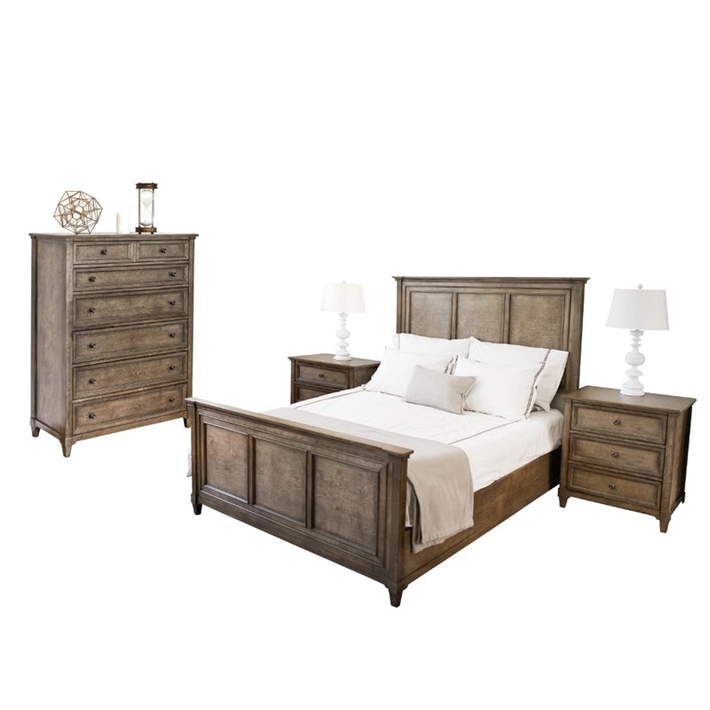 | Abbyson Living - Bedroom Sets - RK43314PCQ - Farmhouse style can be yours with this weathered oak bedroom set. Sturdy rubberwood features simple lines and architectural detail. Slatted bed frame requires the use of a box spring. Set includes headboard, footboard and rails, two nightstands and 7 drawer chest. Full suite of coordinating pieces also available.Finish: Brown; Materials: Solid Rubberwood Construction; Brass handles and knobs; English dovetail joint construction; Set includes 1 bed, 2 nightstands, and 1 chest. Specifications:King Bed Dimensions: 60 H x 67 W x 90 D; Product Weight: 139 lbs; Chest Dimensions: 50 H x 36 W x 19 D; Nightstand Dimensions: 30 H x 28 W x 19 D.