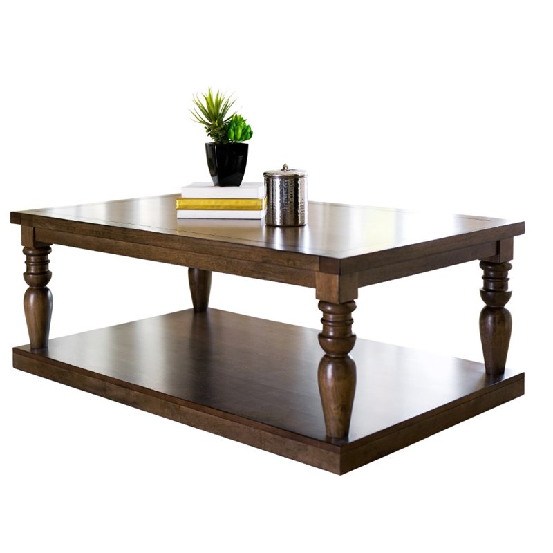 | Abbyson Living - Coffee Tables - RK4331100 - Farmhouse style can be yours with this weathered oak coffee table. Sturdy rubberwood table features spindle legs and hand carved detail on table top. Full suite of coordinating pieces also available. Finish: Weathered OakMaterials: Solid Rubberwood ConstructionDetailed hand carved curvaturesSpecifications:Overall Product Dimensions: 19 H x 50 W x 30 DProduct Weight: 84 lbs