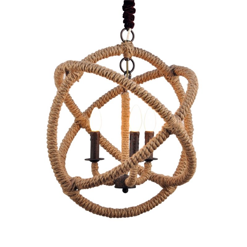 | Abbyson Living - Chandeliers - SHMD20603 - The sea is calling with this nautical inspired chandelier. Rope covered iron frame encircles three 60 watt lights and makes the perfect finishing touch to your beach house décor. Light bulbs not included. Finish: BrownMaterial: Iron Frame Banded by Jute RopeSetting: IndoorFixture finish: RusticNumber of lights: Three (3)Requires Three (3) 60-watt, E12 socket, type B bulbs (not included).Specifications:Overall Product Dimensions: 22 H x 20 W x 12 DProduct Weight: 7 lbs