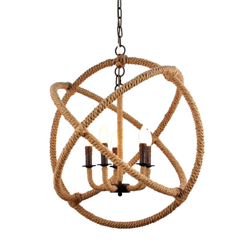 | Abbyson Living - Chandeliers - SHMD20605 - The sea is calling with this nautical inspired chandelier. Rope covered iron frame encircles five 60 watt lights and makes the perfect finishing touch to your beach house décor. Light bulbs not included. Finish: BrownMaterial: Iron Frame Banded by Jute RopeSetting: IndoorFixture finish: RusticNumber of lights: Five (5)Requires Five (5) 60-watt, E12 socket, type B bulbs (not included).Specifications:Overall Product Dimensions: 30 H x 28 W x 29 DProduct Weight: 17 lbs